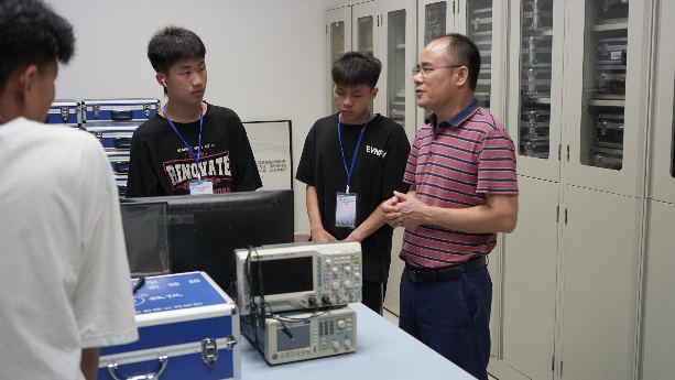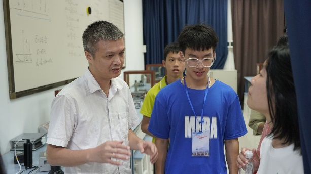 7月11日,那坡中学研学团的同学们先后参观了必赢的洁净实验室、光学实验室等,面对从未见过的实验仪器,他们秉承求知之心,向实验室负责老师提出了自己的疑问,而老师们也都耐心地向他们讲解实验原理与仪器使用方法。
