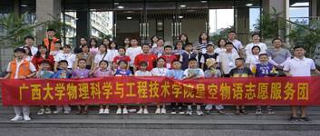 为了深入学习习近平总书记的系列讲话精神,以实际行动迎接党的二十大胜利召开,提高大学生社会实践能力和志愿服务意识,在社会实践的大课堂中 “受教育、长才干、作贡献”,7月11日-7月13日,必赢星空物语志愿服务团以饱满的精神状态和认真负责的态度,依托学院天象馆开展了一系列天文科普活动。先后接待了那坡县中小学优秀学子、西大第一附属幼儿园,组织了“超级月亮”观测活动等,服务了超过1000人次,在轻松愉快的氛围中让师生们感受到科研之美、宇宙之美。
