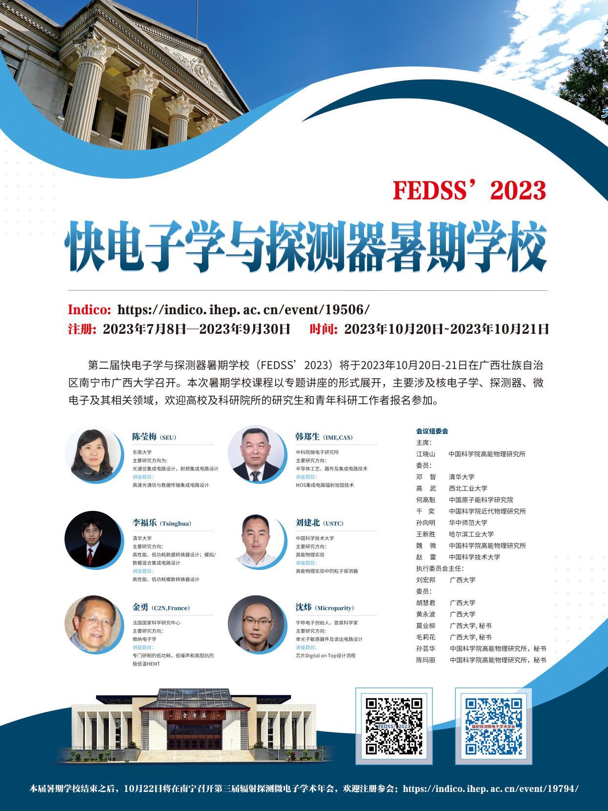 第二届快电子学与探测器暑期学校(FEDSS’2023)将于2023年10月20-21日在437ccm必赢国际官网召开。本次暑期学校课程以专题讲座的形式展开,主要涉及核电子学、探测器、微电子及其相关领域,欢迎高校及科研院所的研究生和青年科研工作者报名参加。