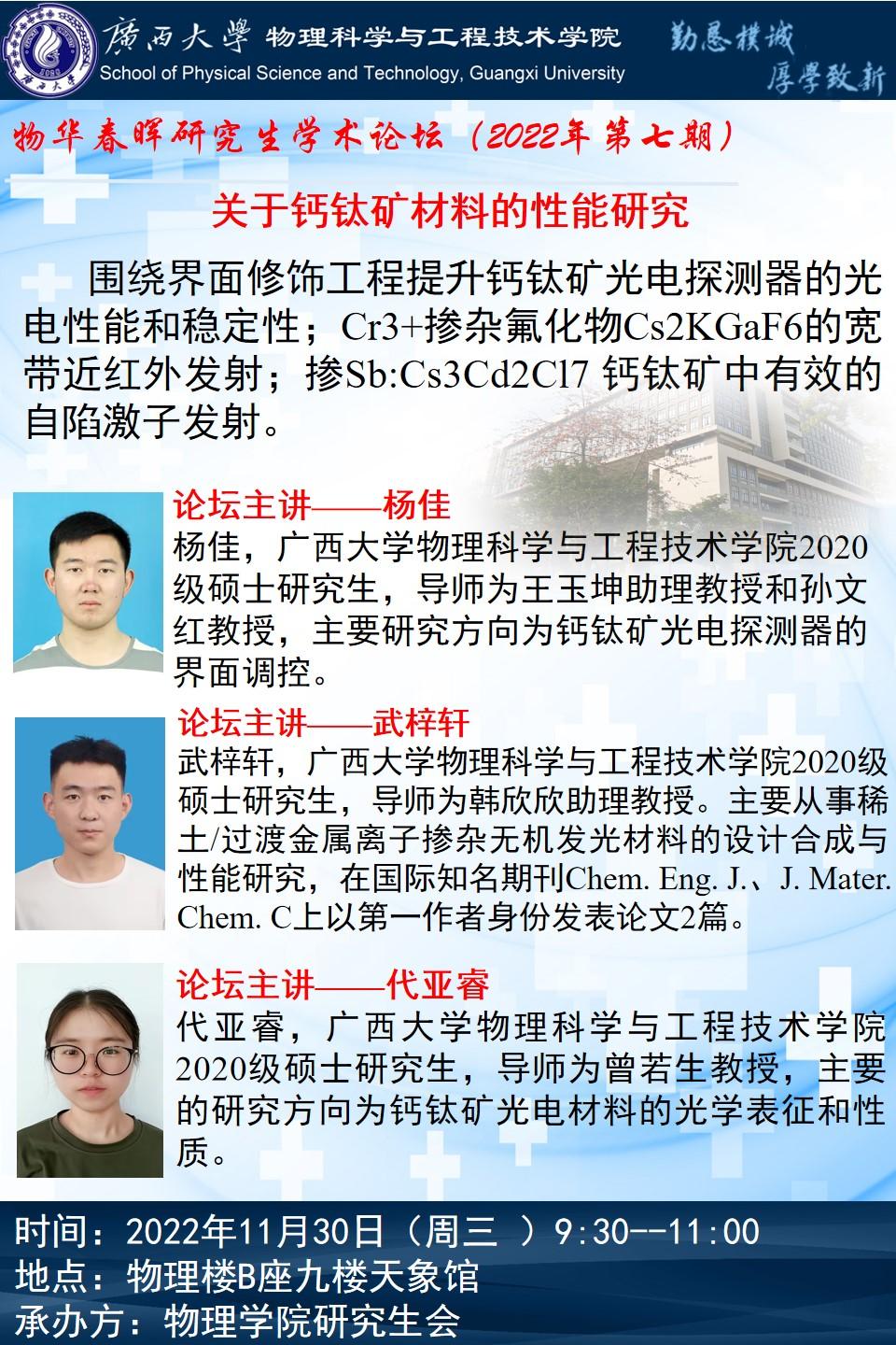 下一篇:2022年物华春晖学术论坛(第6期):分享同学——温晓斌、韦晓春、贺诗萱