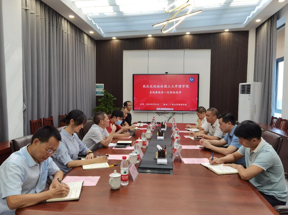 9月16日上午,桂林理工大学理学院肖剑荣院长一行到必赢考察调研。学院党委书记袁涛出席座谈会并致欢迎辞,学院常务副院长王祥高主持座谈会。