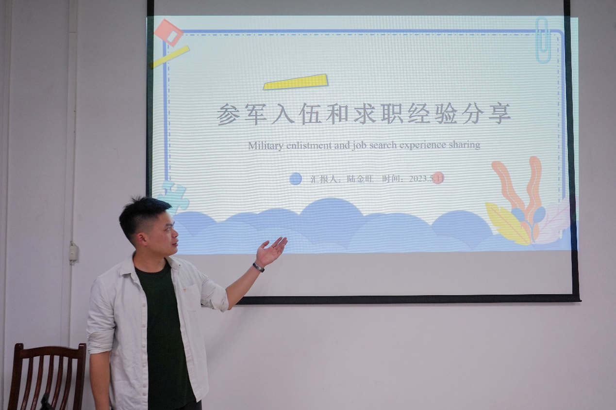 座谈会中,物理192班孙晓冉同学和电科193班刘冬梅同学分别从专业学习、保研、学科竞赛以及学生干部经历等多个方面进行了经验分享,物理191班陈浩浩同学和电科193班陆金旺同学分别从志愿服务、备战考研、科研实训、入伍经历以及求职面试等多个方面进行了经验分享,建议同学们要始终将学习放在第一位,合理规划时间,高效率地学习和工作,不断充实自己、积蓄能量,以奋斗姿态激扬青春,不负时代,不负华年。