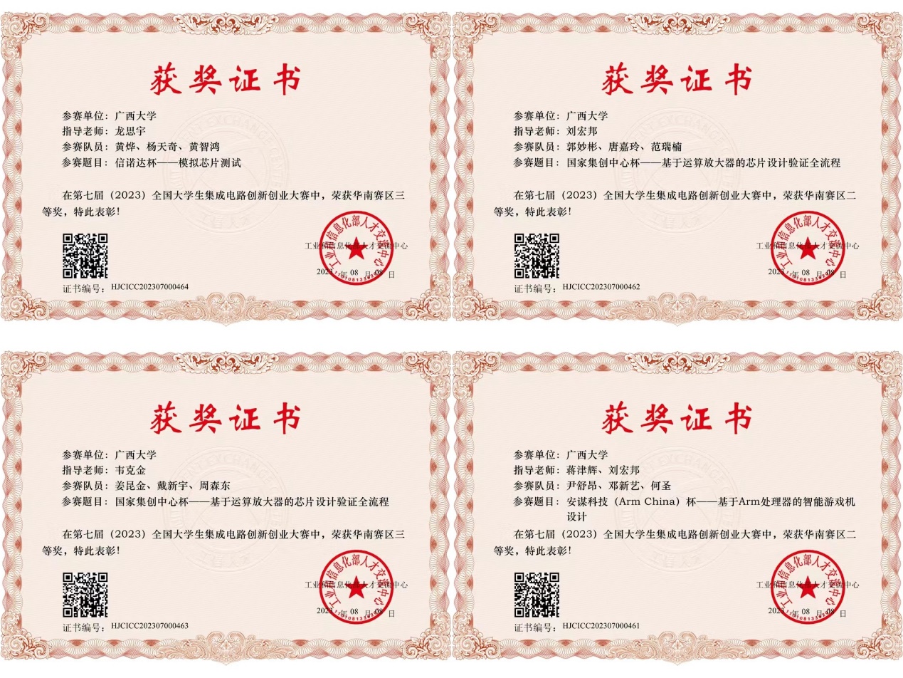 近日,第七届全国大学生集成电路创新创业大赛获奖名单正式公布。这是必赢首次参加集成电路大赛,经过激烈角逐,必赢学子斩获华南赛区二等奖2项、三等奖2项。此外,我校还获得了华南赛区优秀组织奖。