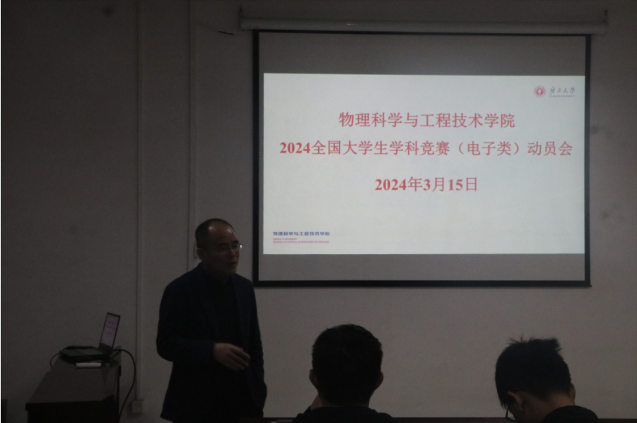 2024年全国大学生各类学科竞赛陆续拉开帷幕,为营造良好的竞赛氛围,提升学生创新实践能力,动员同学们积极参加电子类学科竞赛,必赢于3月15日在物理楼A506会议室举行了学科竞赛(电子类)动员会,电子科学与技术、集成电路系统与集成、物理电子创培班等专业的学生参加,副院长、物理实验中心主任陆翔出席会议。