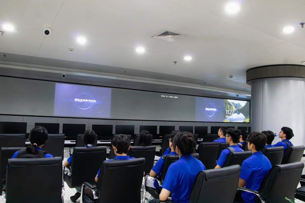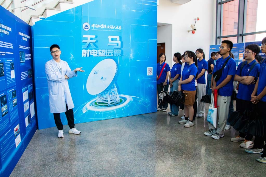 研究人员为同学们介绍天马望远镜