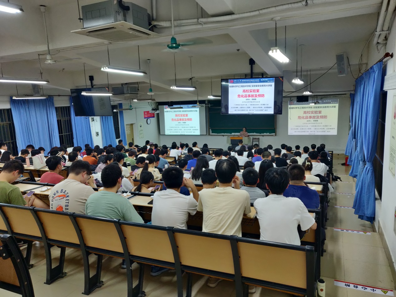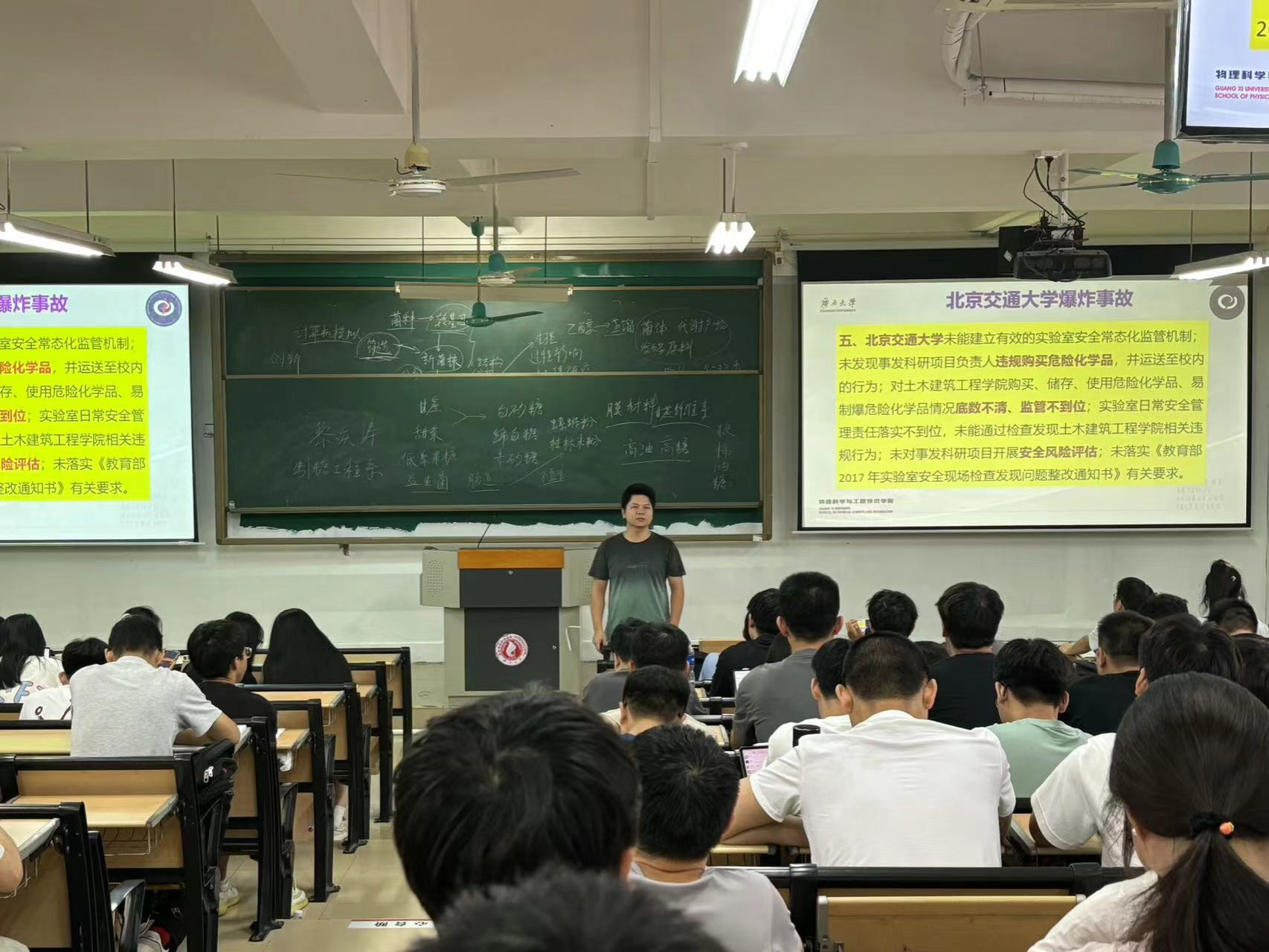 本次实践教学活动分别由陆翔副院长、资源环境与材料学院何娟霞老师以及实验中心潘智毅副主任进行授课。陆副院长从实验室安全的重要性入手,为学生们详细介绍了学院实验室基本情况,重点解读了学校实验室安全8大隐患及其达标要求和排查要点,最后介绍了学校实验室安全专项整治三年行动工作部署,为新生开展安全实验奠定了基础。何老师作为安全领域的专家,从安全专业的角度为新生分析了实验室安全事故诱因,介绍了危险化学品事故及如何有效预防,最后通过典型案例分析为大家详细讲解了实验室常见安全标识,加深了新生对危化品等安全隐患的认识。潘副主任以安全教育的重要性和安全管理的依据为出发点,详细解读了教育部发布的《高等学校实验室安全规范》、《高等学校实验室安全检查项目表(2024年)》和学校出台的《437ccm必赢国际官网实验室安全“十必须”与“十禁止”》、《437ccm必赢国际官网实验室安全责任追究办法》等文件,最后为新生介绍了学院常态化管理工作,不断筑牢安全意识。最后,根据培训内容,所有新生参加了学院组织的安全教育考试。