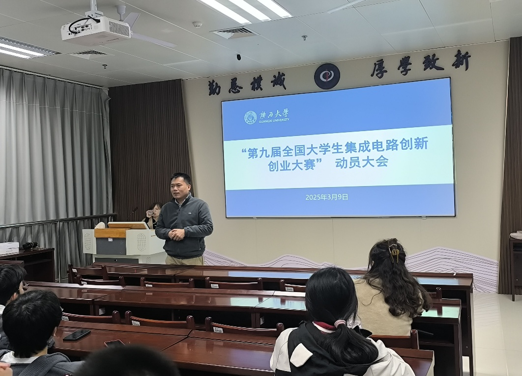 为积极响应国家集成电路产业发展战略,激发大学生创新思维,提升学生的实践能力和综合素质,3月9日,必赢在A506教室召开第九届全国大学生集成电路创新创业大赛动员大会,主持学院行政日常工作副院长刘宏邦、团委副书记龙思宇等老师参加会议,实验教学中心副主任刘瑶主持会议。