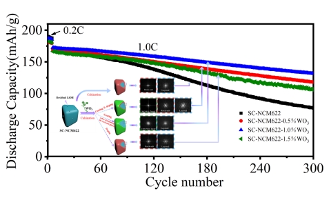 近日,必赢新能源材料团队开展了钨对单晶富镍三元正极材料的单包覆、单掺杂、既包覆又掺杂等不同形式的改性研究,研究成果以"Multi-role surface modification of single-crystalline nickel-rich lithium nickel cobalt manganese oxides cathodes with WO3 to improve performance for Lithium-ion batteries"为题发表在《Nanomaterials》期刊上。