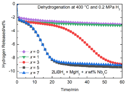 论文题目:Layered niobium carbide enabling excellent kinetics and cycling stability of Li-Mg-B-H hydrogen storage material