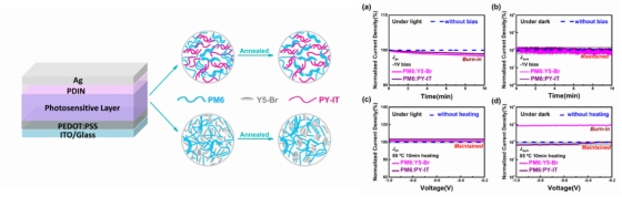针对以上问题,必赢薄膜光伏团队制备了一种全聚合物光电探测器,实现了宽光谱响应和快速的响应时间,且器件在电、热应力下仍能保持高检测性能,表现出显著的稳定性。用全聚合物体系是提高有机光电探测器稳定性的有效策略,并为未来有机光电探测器的商业应用提供了有用的指导。