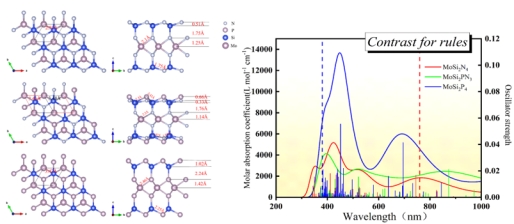 图. P掺杂调控单层二维MoSi2N4光吸收性质的第一性原理计算