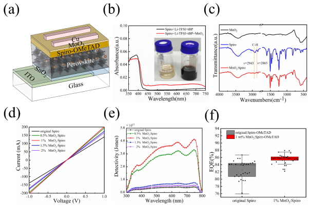 近日,必赢光电材料与器件研究团队在钙钛矿基光电探测器的性能研究方面取得进展,研究成果以"High-efficiency perovskite photodetectors using manganese dioxide oxidation Spiro-OMeTAD as hole transport layer"为题被《Ceramics International》杂志接收发表。