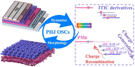有机太阳能电池(OSCs)由于其可调的能级结构、合成成本较低、质量轻、柔韧性等优点而受到广泛关注,尤其是非富勒烯受体(NFA)的出现将有机光伏电池的效率提升了20%,其中,给体-受体之间的电离能(IE)偏移是影响效率的主要原因之一。然而,目前高效的NFA OSCs的活性层主要由给受体混合在大块区域的体异质结结构(BHJ)组成,因此会导致局部能级紊乱,为研究IE对OSCs效率影响的研究添加了困难。