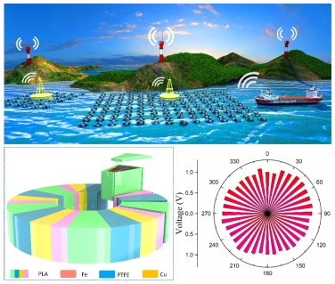针对以上问题,必赢蓝色能源团队发展了一种多角度、可拼接且上下对称的方环状的摩擦纳米发电机,实现了多频率响应,且器件在倾覆时仍能保持原有的输出,表现出良好的收集能力。还可以根据器件在阵列中的不同位置,通过调整其方环的组成单元,从而因地制宜地调控器件的波浪响应频率,提高阵列的波能采集效率。用该发电机供能驱动商用射频模块,实现无线信号传输,为发展海洋自驱动传感器提供了可行的策略。研究成果以“O-Ring-Modularized Triboelectric Nanogenerator for Robust Blue Energy Harvesting in All-Sea Areas ”为题在线发表于国际顶级能源类期刊《Nano Energy》上。