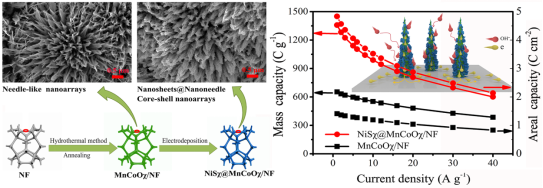 近日,必赢新能源材料团队黄海富等人开展了核壳型纳米阵列设计与储能性能的研究,研究成果以“Needle-like NiSχ@MnCoOχ core–shell nanoarrays with high charge storage performance for application in hybrid supercapacitors”为题发表在《Journal of Energy Storage》期刊上。