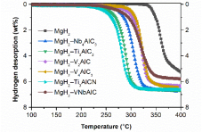 图1 添加不同MAX材料的MgH2的放氢曲线